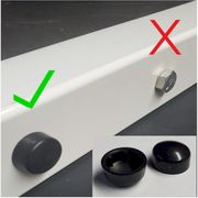 Black ABS Plastic Disk-Shaped Hex Bolt Cover Cap for 1/4" Diameter Bolts (7/16" Wrench Size) Give your application a professional finished appearance by hiding unsightly hex bolt heads and nuts. Be sure to check your existing hardware and compare with our dimensions below to make sure they will work in your application. When covering hex nuts, a thinner jam nut must be used (if it will work safely in your application) so be aware that there can't be too much excess threaded bolt shaft protruding past the nut, or cap cover will not completely cover the nut itself.